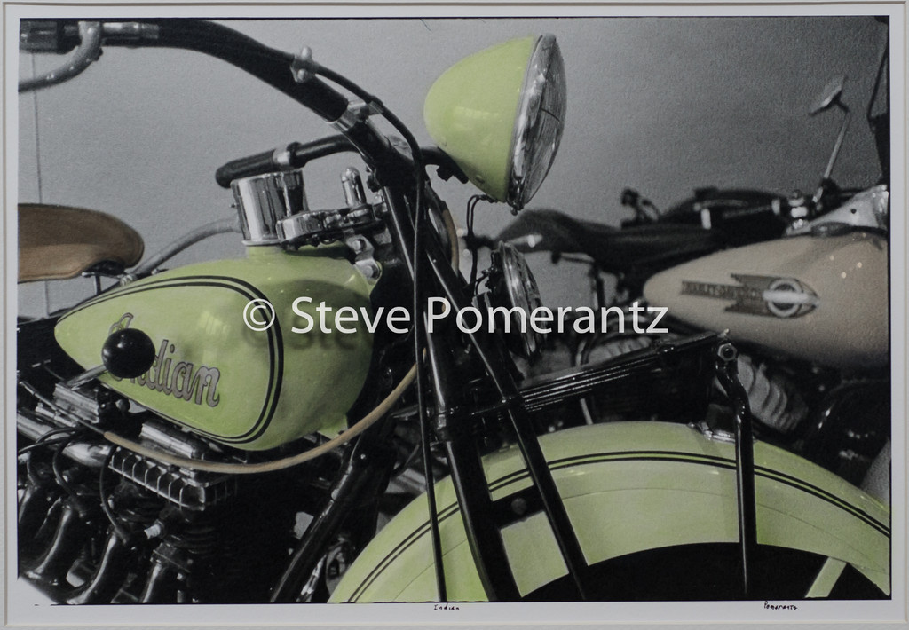 My name is Steve Pomerantz and I am a fine art film photographer. I print traditional darkroom silver gelatin photographs, many of which I hand color with oils and pencil. Some of my photos color darkroom prints from color film. I print most of my work on 16"x20" paper in a 16"x20" frame or 20"x24" in a 20"x24" frame with non glare Art Glass with a narrow mat. I am also doing backlit transpaarancies in different sizes and formats. They are both on Ektachrome 4x5 and 8x10 as well as black and white of various sizes, then hand colored. Most of my frames are made by me.